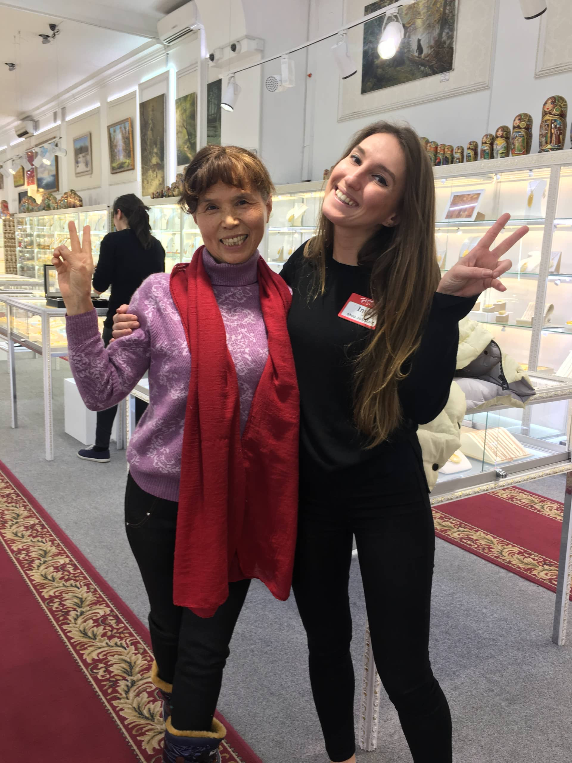 Работала с китайцами, продавала им дорогие сувениры из янтаря. Это все тот же магазин.