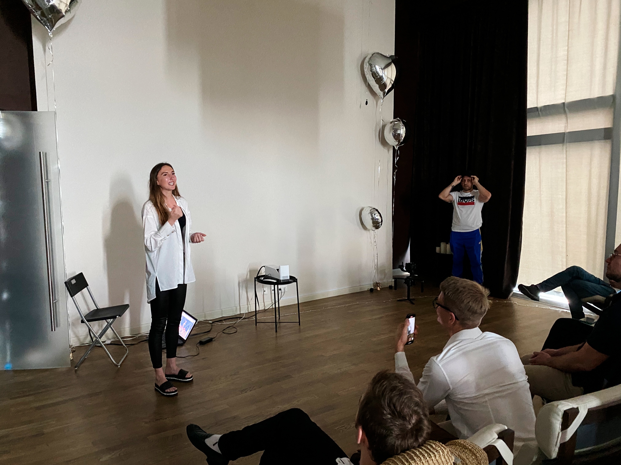 На фоне моей студии по отбеливанию зубов